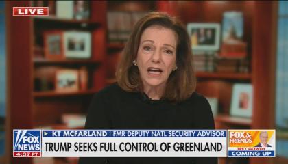 On Fox, Former Deputy National Security Adviser KT McFarland claims, “at the end of the day we're going to get control of Greenland” Video & Audio 01/15/26 9:44 AM EST